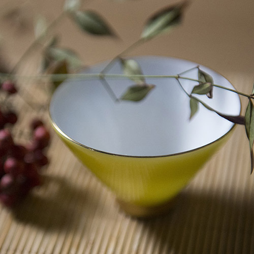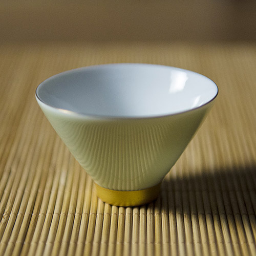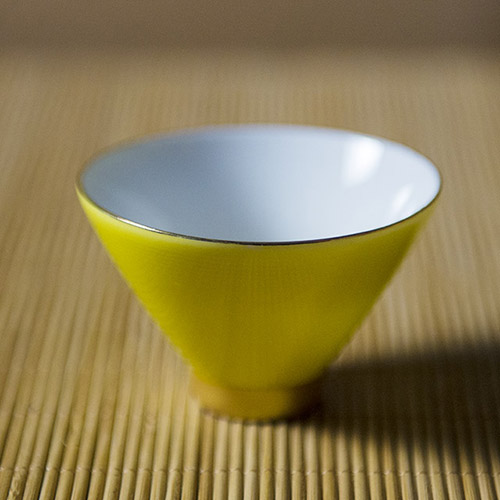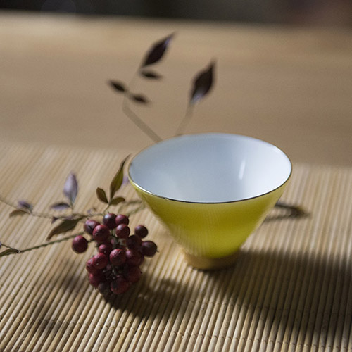 此款斗笠杯的色款有:鹅黄色、豆青色、天青色、象牙白色。