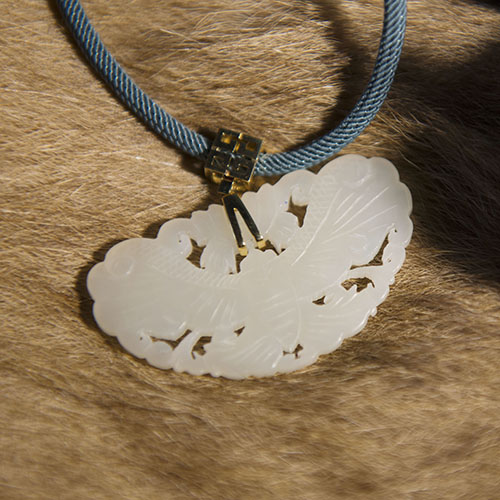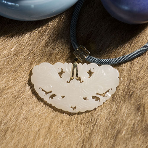 蝴蝶佩在明清时期十分流行。这款和田白玉佩,制作精湛,质地优良、莹润柔和。蝴蝶因身美、形美、色美而被人们视为吉祥美好的象征,因“蝶”与“耄耋”中的“耋”同音,故也预示健康长寿!